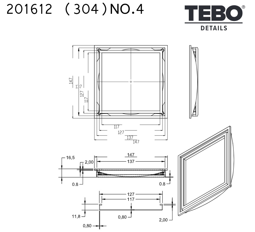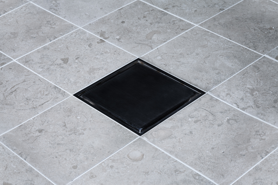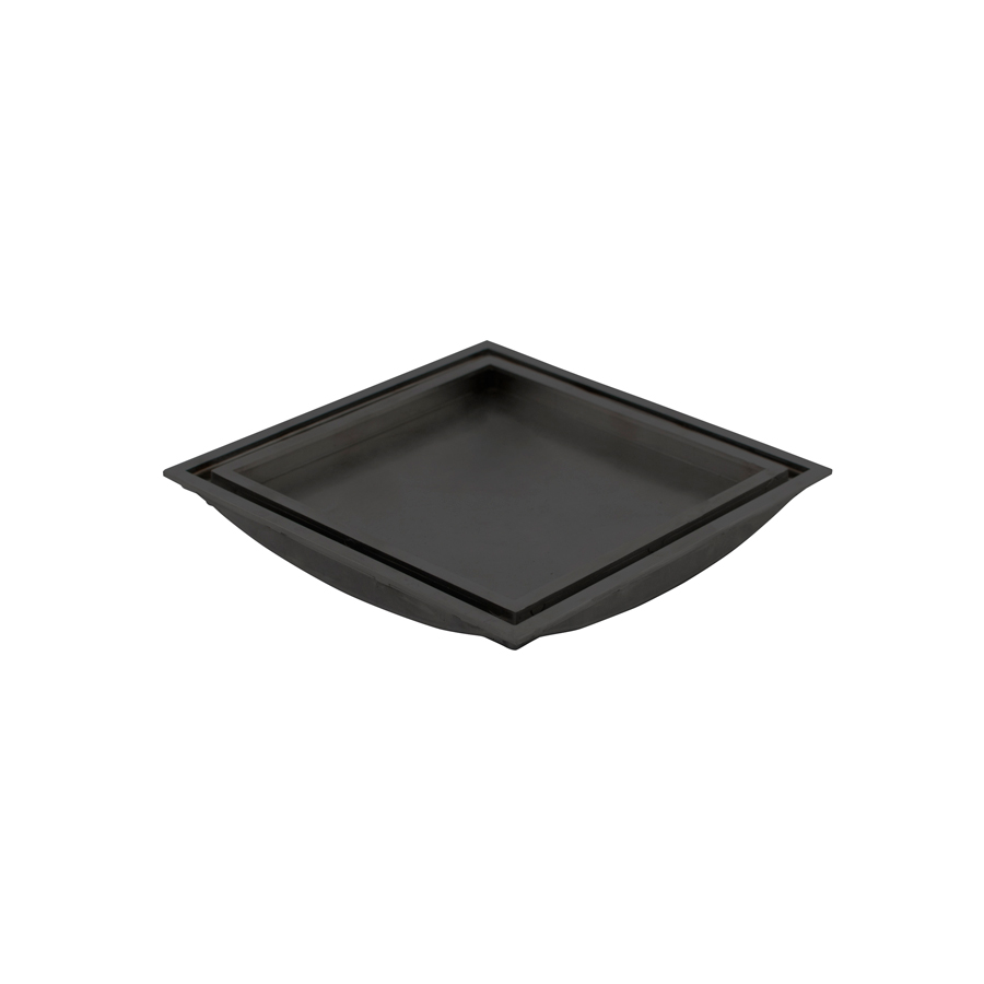 Stilren matt svart pulverlackerad golvbrunnssil med ram för montering av klinker. Tillverkad av rostfritt stål typ AISI 304. Består av två delar: Klinkerram och klinkerlåda. Godstjocklek: 0,8 mm. Vändbar klinkerlåda med en sida för montering av klinker och en med slät svart pulverlackerad yta.