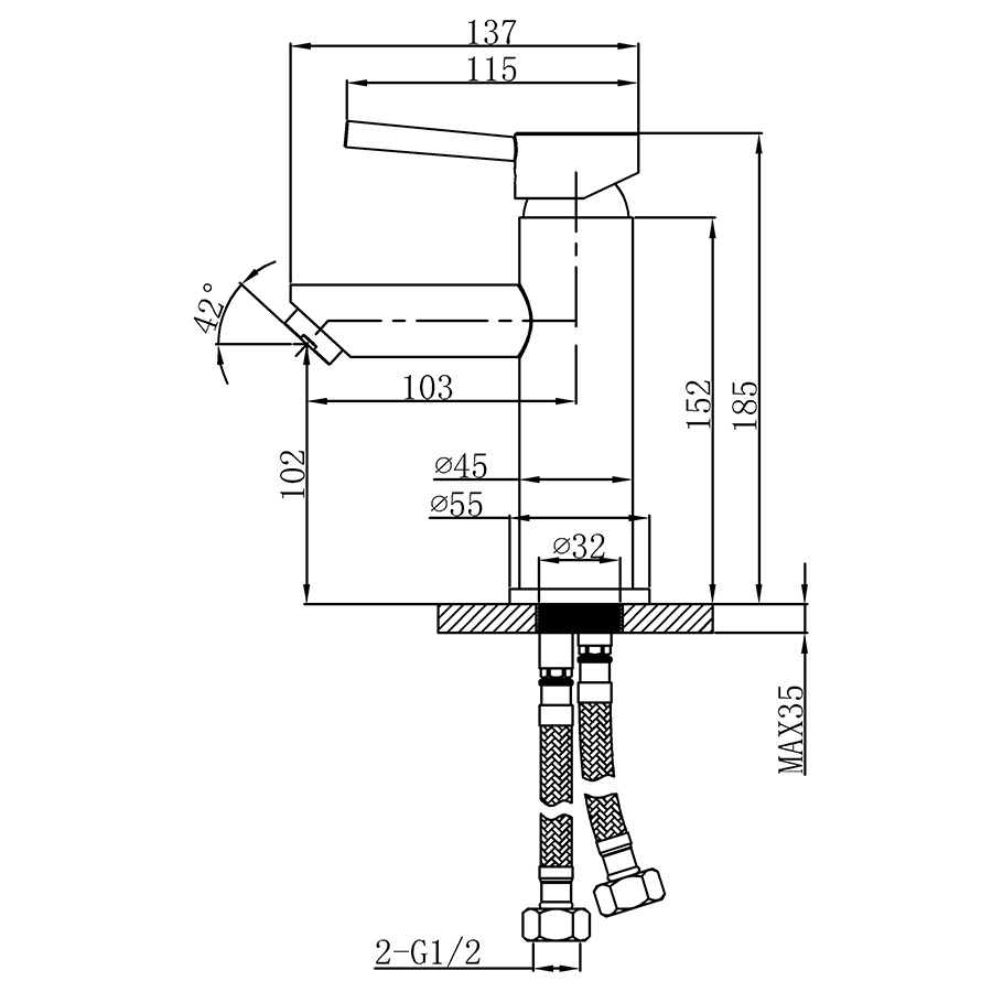 Det här är en svart, matt och exklusiv tvättställsblandare som är tillverkat i mässing och mäter 137×185 mm. Brukas till handfatet i badrummet. En väldigt elegant och unik blandare med sitt speciella utseende som gör att den passar till väldigt många olika handfatsmodeller.